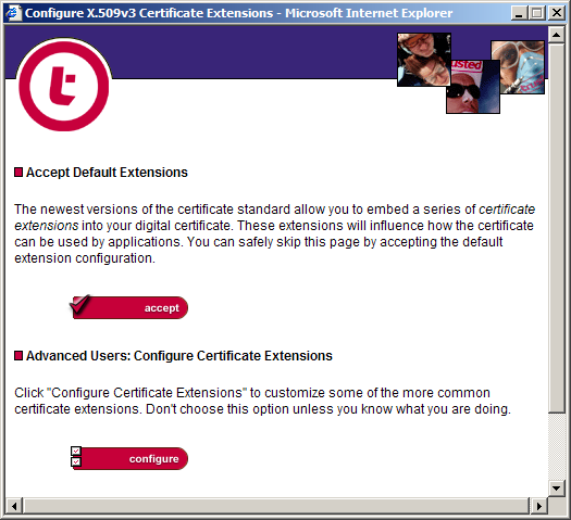since you're reading this tutorial, i'm pretty sure u have no idea what configuring a certificate extension is, so click on accept to accept the default extensions.