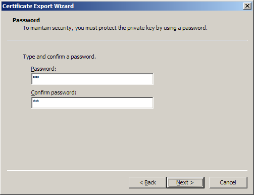 choose a password (i would recommend you use the same one u gave to thawte.com to make it easier to remember)
