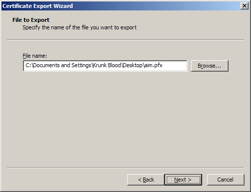 select where u want to export the certificate to (i would recommed your desktop since it's easier to access)