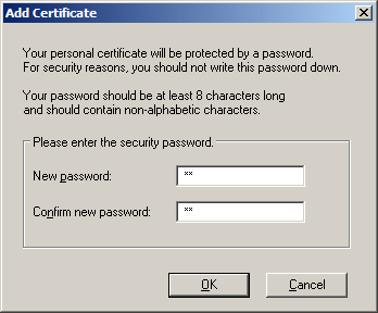 here you want to set a password. i would suggest u pick something that on you would know and read the tips on how to select a good password. this certificate you're about to get will become a legal document of urs just like your driver's license or passport. it's basically the online digital version and you don't want ppl access your info or using it.