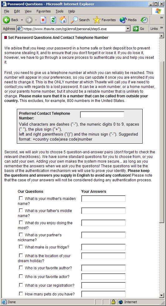 then select 5 security questions in case u forget your password. answer your questions carefully and don't select questions which can change dependent on time.